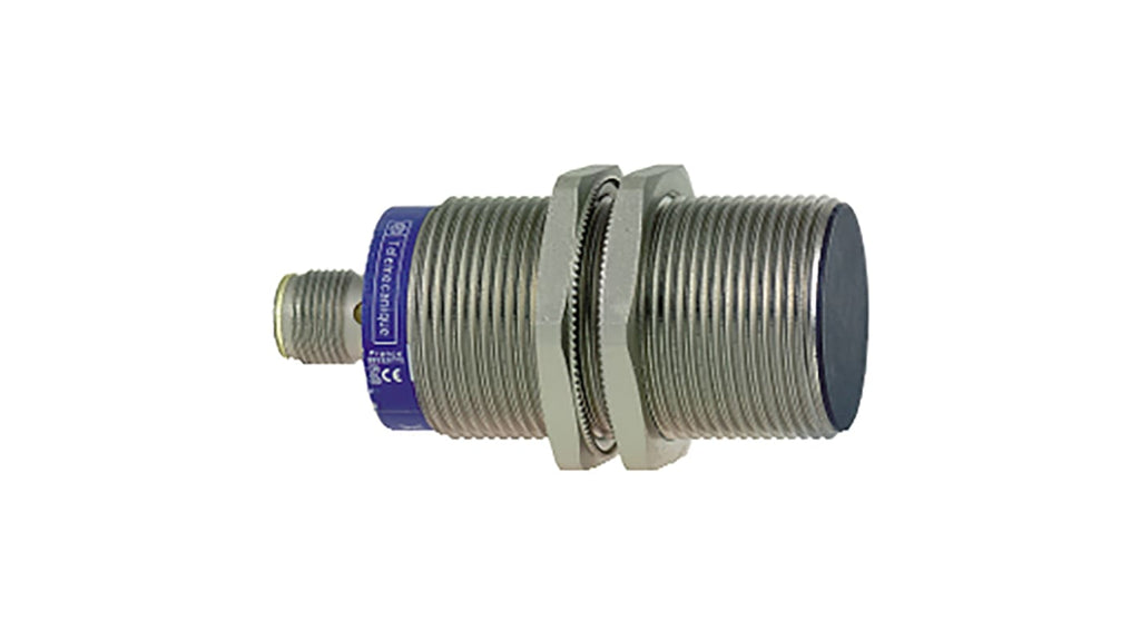 Sensore di prossimità induttivo cilindrico, M30 x 1.5, tecnologia PNP e NPN, gamma di rilevamento 10 mm, tensione di alimentazione 12-24 V c.c., corrente di commutazione 200 mA, connettore M12 a 4 pin, grado di protezione IP67, temperatura operativa da -25 a +70 gradi Celsius, materiale custodia metallico, lunghezza 61.9 mm, larghezza 36 mm, frequenza di commutazione massima 1 kHz, protezione da inversione di polarità e sovraccarico.