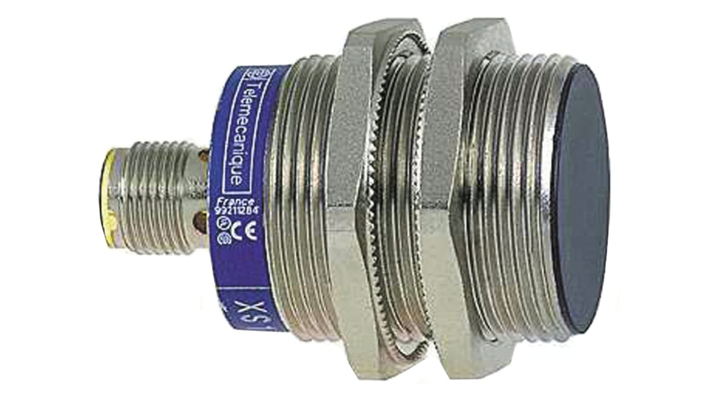 Sensore di prossimità cilindrico induttivo, PNP, M30 x 1.5, rilevamento 20 mm, tensione di alimentazione 12-24 V c.c., corrente di commutazione 200 mA, grado di protezione IP 68, indicazione di stato a LED, protezione da sovraccarico e cortocircuito, montaggio a filo, temperatura operativa da -25 a +50 gradi Celsius, materiale custodia in ottone, non schermato, frequenza di commutazione massima 500 Hz.
