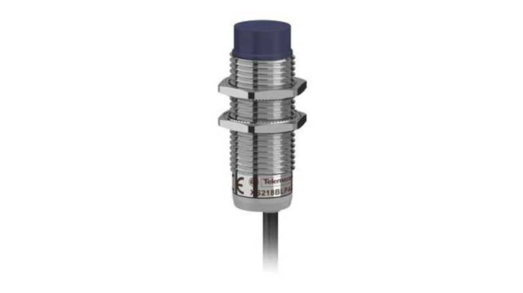 Sensore di prossimità induttivo cilindrico, PNP, M18 x 1, rilevamento 8 mm, alimentazione 12-24 V cc, corrente di commutazione 200 mA, frequenza di commutazione massima 500 Hz, grado di protezione IP65/IP67, materiale custodia ottone nichelato, temperatura operativa da -25 a +70 gradi Celsius, montaggio non a filo, schermatura parziale, conforme a CE, CSA, IEC 60068-2-27, IEC 60068-2-6, IEC 60529, UL.
