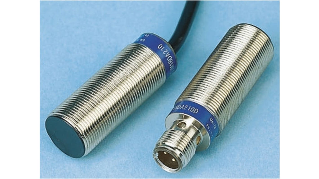 Sensore di prossimità induttivo cilindrico M18, modello XS2M18KP340, tecnologia induttiva, uscita PNP e NPN, gamma di rilevamento 8 mm, tensione di alimentazione 12-24 V c.c., montaggio non a filo, grado di protezione IP68, corpo in ottone nichelato, lunghezza 64 mm, peso 0,12 kg, resistenza a vibrazioni e urti conforme a normative IEC e EN, certificazioni UL e CSA.