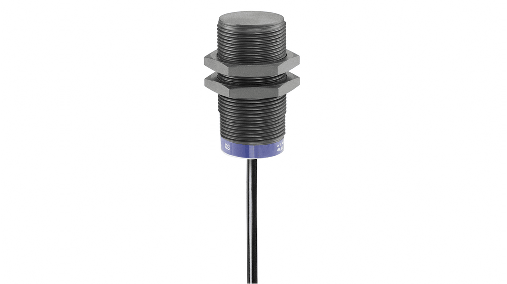 Sensore di prossimità induttivo cilindrico, PNP, M18 x 1, rilevamento 8 mm, alimentazione 12-48 V c.c. con protezione contro l'inversione di polarità, uscita discreta normalmente chiusa, capacità di commutazione fino a 200 mA, montaggio a filo, grado di protezione IP68, lunghezza 62 mm, materiale plastico. Codice costruttore: XS4P18PB370E1, marchio: Telemecanique Sensors.