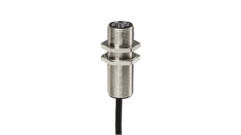 Sensore di prossimità induttivo cilindrico, tecnologia NPN, dimensione M18 x 1, gamma di rilevamento 5 mm, tensione di alimentazione 12-48 V c.c., corrente di commutazione 200 mA, grado di protezione IP68 e IP69K, temperatura operativa da -25 a +70 gradi Celsius, frequenza di commutazione massima 2 kHz, materiale custodia in ottone e PPS, cavo di 2 m, montaggio a filo. Codice costruttore XS518BLNAL2.