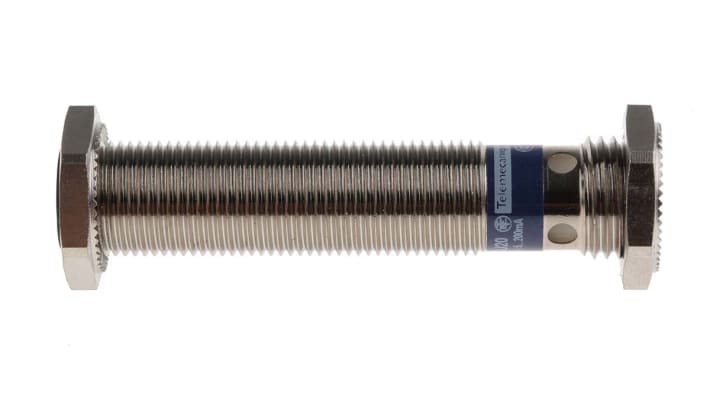Sensore di prossimità induttivo cilindrico, M12 x 1, rilevamento 4 mm, tensione di alimentazione 20-264 V c.a./c.c., corrente di commutazione 200 mA, grado di protezione IP67/IP69K, temperatura operativa da -25 a +70 gradi, corpo in ottone nichelato, montaggio a filo, connettore maschio 1/2" 20 UNF a 3 pin, frequenza di commutazione massima 1 kHz, peso 0,025 kg, conforme a UL e CSA.