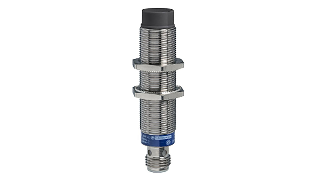 Sensore di prossimità induttivo cilindrico, M18 x 1, tecnologia PNP, gamma di rilevamento 12 mm, tensione di alimentazione 12-48 V c.c., corrente di commutazione 200 mA, grado di protezione IP67 e IP69K, temperatura operativa da -25 a +70 gradi, connettore M12 a 4 pin, custodia in ottone e PPS, lunghezza 71.65 mm, larghezza 24 mm, frequenza di commutazione massima 1 kHz, protezione da sovraccarico e inversione di polarità.