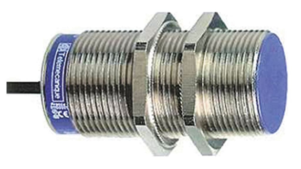 Sensore di prossimità induttivo cilindrico, NPN, M30 x 1.5, gamma di rilevamento 15 mm, tensione di alimentazione 12-48 V c.c., corrente di commutazione 200 mA, frequenza di commutazione massima 1.5 kHz, temperatura operativa da -25 a +70 gradi Celsius, grado di protezione IP67, montaggio a filo, materiale custodia plastica, non schermato, protezione da inversione di polarità e sovraccarico. Codice costruttore XS630B1NBL2. Marchio Telemecanique Sensors.