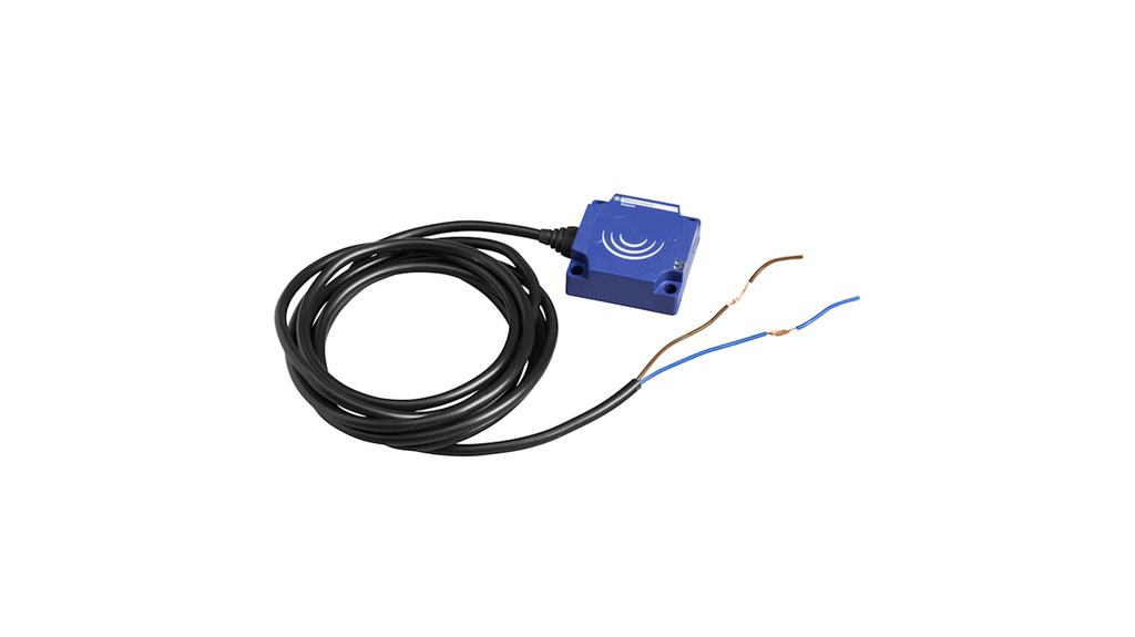 Sensore di prossimità induttivo Telemecanique Sensors, PNP, rilevamento 25 mm, tensione di alimentazione 12-24 V, uscita discreta normalmente aperta, montaggio non incastrato, dimensioni 40 x 40 x 15 mm, grado di protezione IP68, lunghezza cavo 10 m, materiale contenitore PBT, tecnologia a oscillatore, tipo terminale cavo, montaggio a filo.