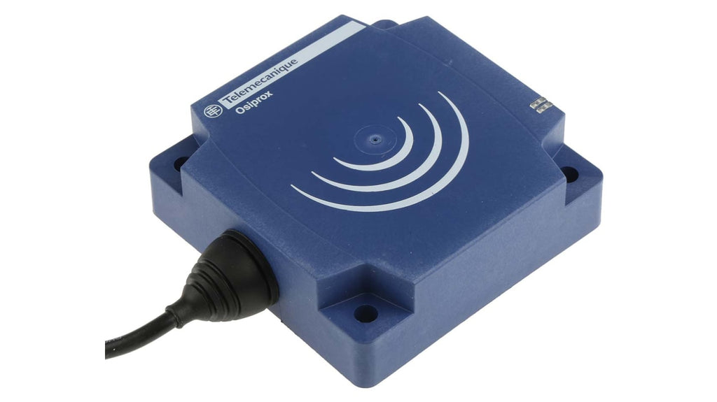 Sensore di prossimità induttivo Telemecanique, PNP, rilevamento fino a 60 mm, tensione di alimentazione 12-24 V c.c., corpo in plastica PBT, dimensioni 80 x 80 x 26 mm, grado di protezione IP68, corrente di commutazione 200 mA, temperatura operativa da -25 a +70 gradi, montaggio non a filo, cavo di collegamento 2 m, conforme a IEC 60529, marcatura CE, certificato UL e CSA.