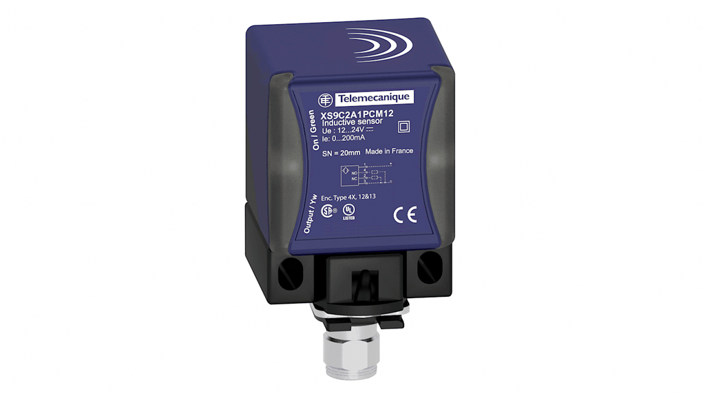 Sensore di prossimità induttivo Telemecanique Sensors, PNP, rilevamento 20 mm, tensione di alimentazione 12-24 V, connettore M12 a 4 pin, grado di protezione IP65, IP67, IP69K, montaggio a filo, materiale contenitore PBT, uscita discreta 1 NA + 1 NC, lunghezza 70 mm. Tipo di cassone fisso, tecnologia sensori induttiva.