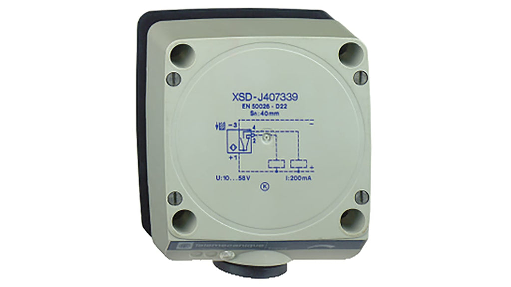 Sensore di prossimità induttivo, PNP, rilevamento fino a 60 mm, tensione di alimentazione 12-48 V c.c., corrente di commutazione 200 mA, grado di protezione IP67, temperatura operativa da -25 a +70 gradi Celsius, custodia in plastica, dimensioni 80x40x100 mm, montaggio non a filo, protezione sovraccarico e corto circuito, certificazione CCC. Codice costruttore: XSDH607339. Marchio: Telemecanique Sensors.