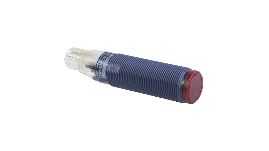 Sensore fotoelettrico miniaturizzato filettato, rilevamento a diffusione, distanza massima 100 mm, uscita PNP, connettore a 4 pin M12, materiale plastico, linea di veduta assiale, tipo di circuito di alimentazione CC, funzione di uscita discreta 1 NC, tecnologia a infrarossi. Serie XU, codice costruttore XUB4APBNM12, marchio Telemecanique Sensors.