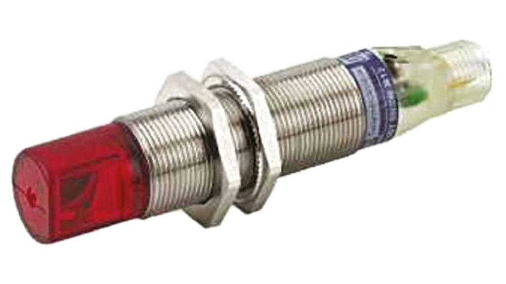 Sensore fotoelettrico cilindrico a retroriflessione, rilevamento fino a 800 mm, uscita NPN, connettore M12. Tensione massima 24V, corrente massima 100 mA, tempo di risposta inferiore a 500 microsecondi. Grado di protezione IP65 e IP67, temperatura operativa da 0 a 55 gradi Celsius. Corpo filettato, diametro 18 mm, materiale custodia in PBT. Progettato per applicazioni di imballaggio e rilevamento di materiali trasparenti.
