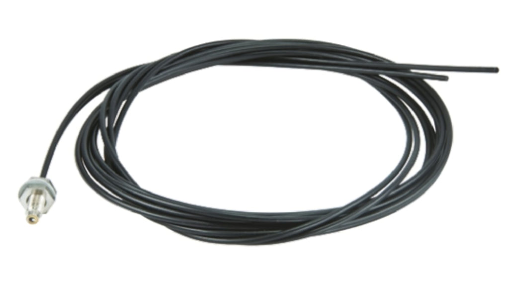 Sensore per fibre ottiche, guida luminosa per amplificatori XUD, tipo fibra ottica in plastica, gamma di rilevamento 55 mm, distanza massima di rilevamento 200 mm, temperatura operativa da -25°C a +60°C, cavi a forma di otto con trefoli a 2 conduttori, compatibile con lenti opzionali per aumento della distanza di rilevamento.