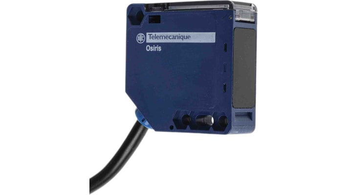 Sensore fotoelettrico compatto a retroriflessione, rilevamento fino a 7 m, uscita relè con timer integrato, cavo precablato da 2 m, grado di protezione IP65, sorgente di luce infrarossa, massima tensione 240V AC/DC, corrente massima 3 A, tempo di risposta inferiore a 25 ms, temperatura operativa da -25°C a +55°C, custodia in PBT, staffa di montaggio disponibile.