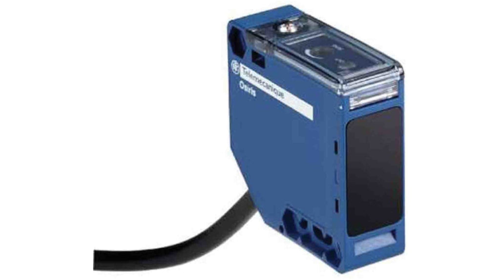 Sensore fotoelettrico compatto, rilevamento a diffusione fino a 1 m, uscita PNP, alimentazione c.c. a 3 fili, dimensioni 50 x 50 mm, corpo in plastica PBT, grado di protezione IP65, sorgente di luce infrarossa, corrente massima 100 mA, tensione massima 24V, temperatura operativa da -25°C a +55°C, tempo di risposta inferiore a 2 ms, cavo di collegamento a 4 fili lungo 2 m.