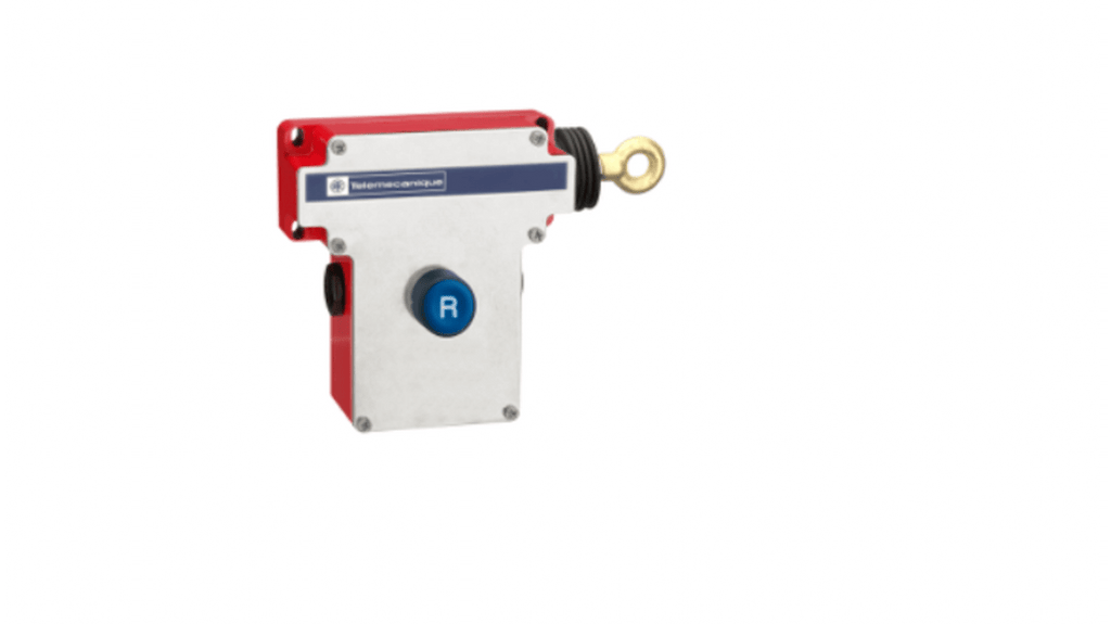 Interruttore a fune per arresto di emergenza, dotato di 1 contatto normalmente chiuso e 1 contatto normalmente aperto, apertura positiva, corrente nominale 0,27 A a 250V c.a., 3A a 240V c.a., corrente termica convenzionale chiusa 10A, durata meccanica circa 60000 cicli, adatto per applicazioni in macchine per lavorazione del legno, cesoie, sistemi di trasporto, macchine da stampa e macchine tessili.