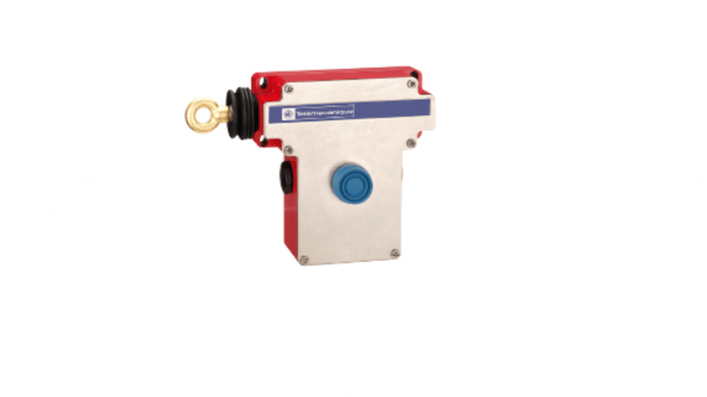 Interruttore a fune per arresto di emergenza, 1 contatto normalmente chiuso + 1 contatto normalmente aperto, corrente nominale 0,27 A a 250 V c.a., 3 A a 240 V c.a., corrente termica convenzionale chiusa 10 A, durata meccanica circa 60000 cicli, grado di protezione IP66, adatto per applicazioni in macchine per lavorazione del legno, cesoie, sistemi di trasporto, macchine da stampa, macchine tessili, laminatoi.