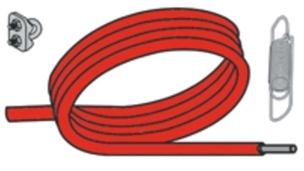 Kit a corda per interruttori a fune Telemecanique XY2C, accessori per cavi galvanizzati con guaina rossa, diametro 3,2 mm e 5 mm, tenditore, astine M6 e M8 con dado di bloccaggio, bloccaggi cavo singolo e doppio per diametri da 3 a 5 mm, supporti per cablaggio, supporto puleggia, molla terminale. Lunghezza totale 20.5 m. Codice costruttore XY2CZ9320.