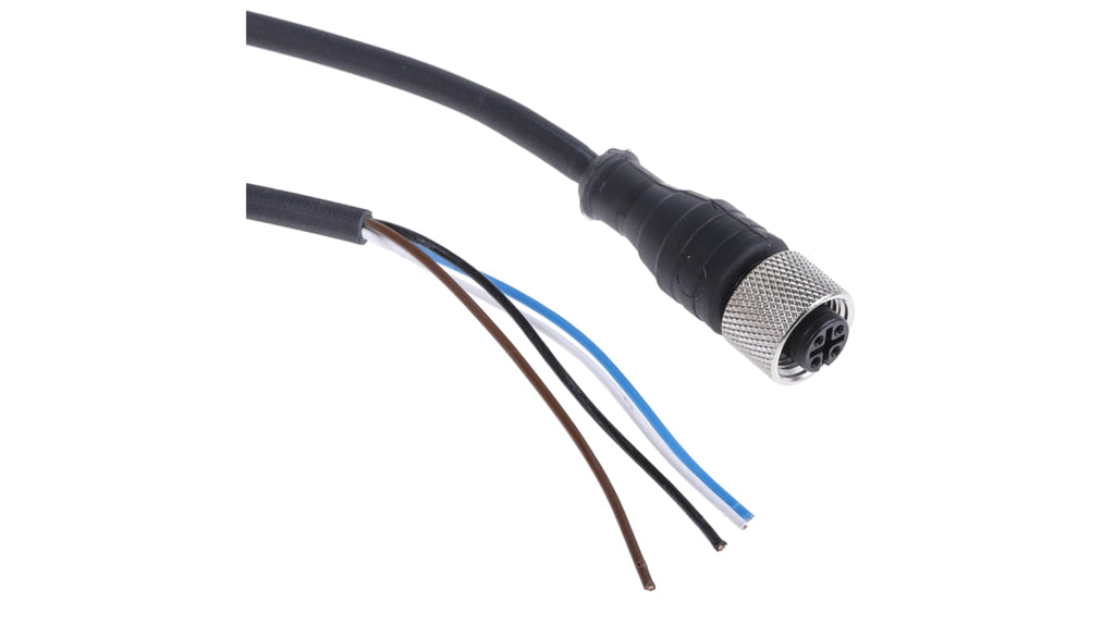 Cavo assemblato diritto per sensori, 4 conduttori, sezione 0,34 mm², lunghezza 10 m, connettore M12 femmina a 4 contatti, senza terminazione, corrente nominale 4 A, tensione nominale 250 V c.a. e 300 V c.c., grado di protezione IP67, materiale di isolamento PUR, diametro esterno 5,2 mm, AWG 22. Codice costruttore: XZCP1141L10, marchio: Telemecanique Sensors.