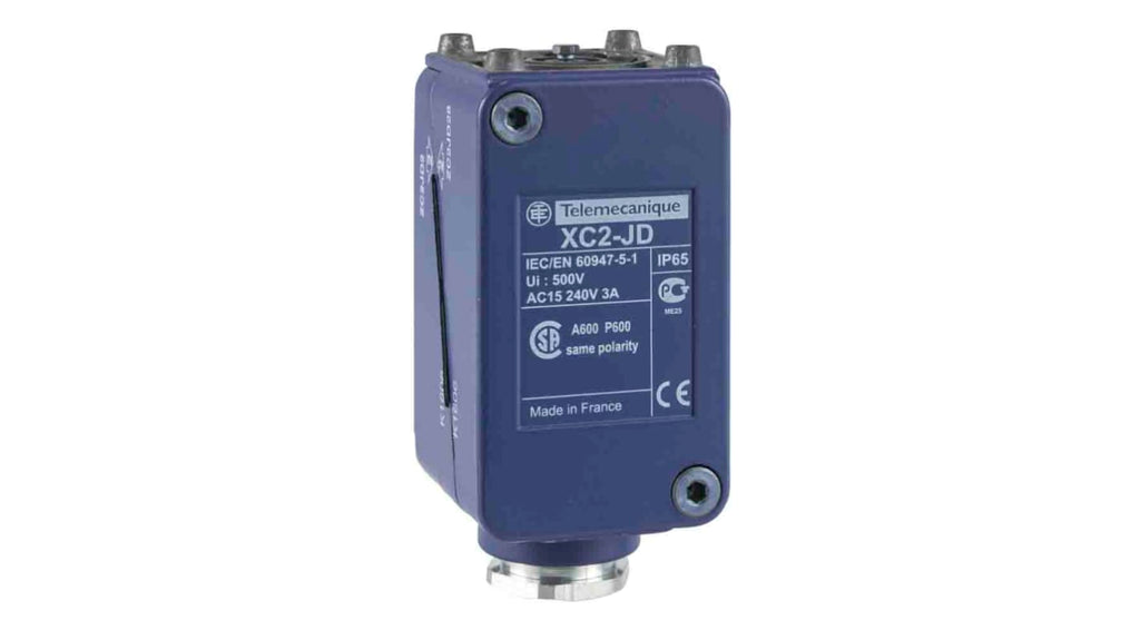 Interruttore di fine corsa con 2 contatti NC a scatto, configurazione 2CO, protezione IP65, corrente massima 10A, tensione massima 500V. Corpo in metallo, dotato di ingresso filettato M20 x 1,5. Compatibile con teste, attuatori e connettori delle gamme XCKD, XCKP e XCKT. Mercury free.