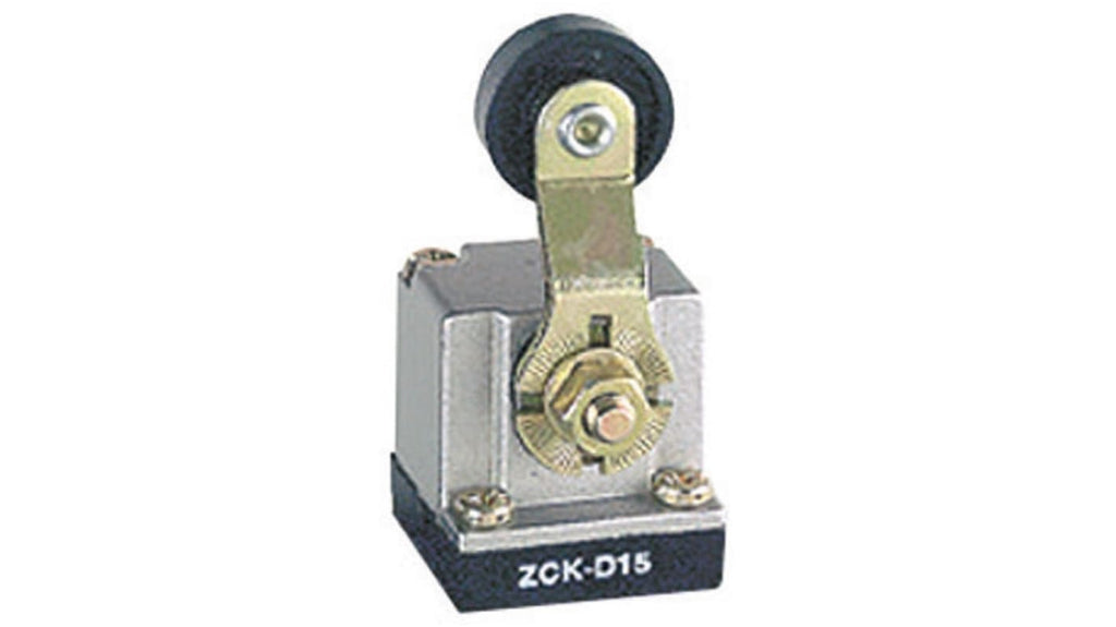 Interruttore di fine corsa Telemecanique Sensors, modello ZCKD41, progettato per applicazioni industriali come scale mobili e movimentazione materiali. Composto da testa dell'attuatore, corpo dell'interruttore e connettore femmina. Standard VDE0660, IEC947-5-1, autorizzazioni UL e CSA. Serie OsiSense XC.