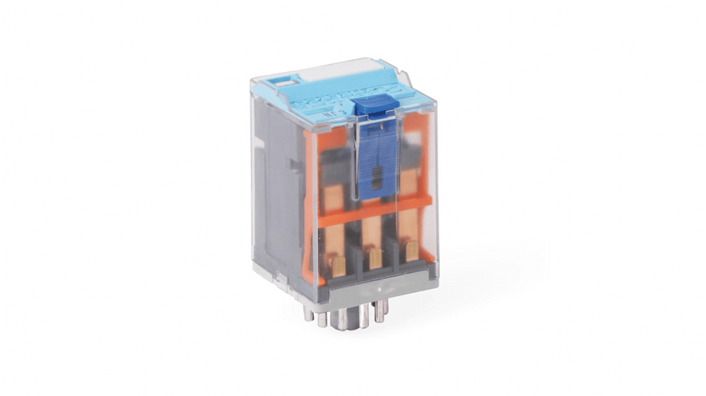 Relè di potenza Turck, 3PDT, bobina 24V cc, A innesto, corrente di commutazione 10A, tensione di commutazione massima CA 250V, tensione di commutazione massima CC 220V, isolamento bobina-contatto 2.5kV, vita elettrica ≥100000 operazioni, vita meccanica 20000000 operazioni, grado di protezione IP40, materiale contatti lega d'argento, temperatura operativa -40°C/+70°C, dimensioni 35x35x58.5mm, peso 81g, conforme a EN 60947.