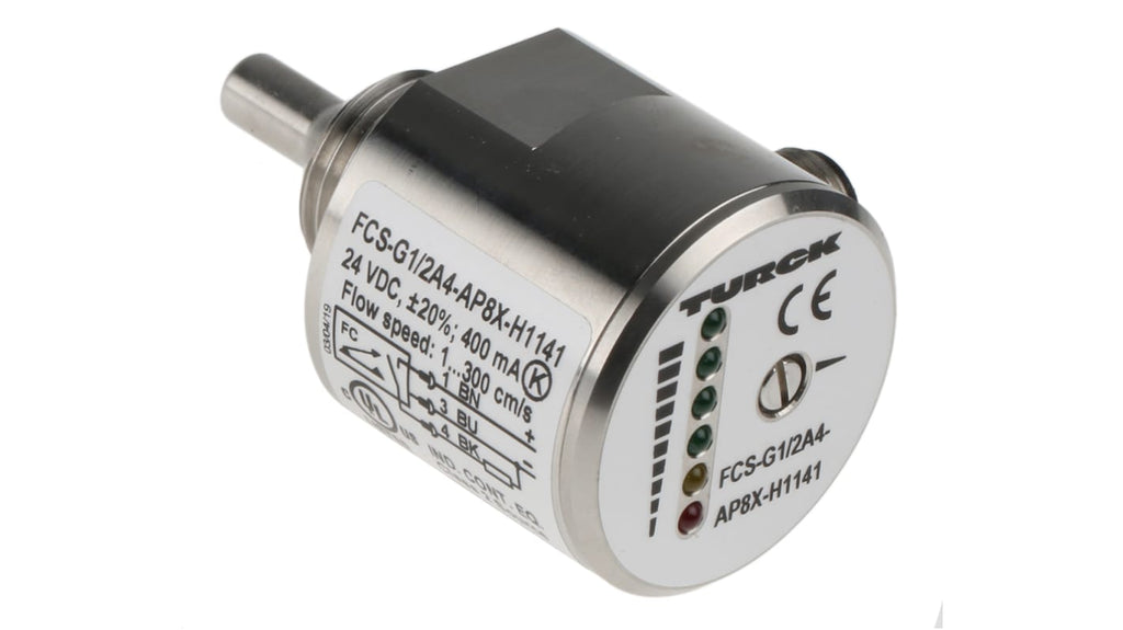 Regolatore di flusso Turck, flusso 1 a 150 cm³/s per acqua, 3 a 300 cm³/s per olio, PNP, corrente nominale 400 mA, tensione di alimentazione 19 a 29 V c.c., connessione G1/2, grado di protezione IP67, intervallo di temperatura -25 a +80 gradi Celsius, compatto, con indicatore LED. Codice costruttore FCS-G1/2A4-AP8X-H1141.