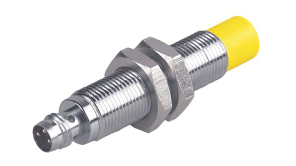 Sensore di prossimità induttivo cilindrico, tecnologia PNP, dimensione filetto M12 x 1, gamma di rilevamento 5 mm, tensione di alimentazione 10-30 V c.c., corrente di commutazione 200 mA, grado di protezione IP67, materiale custodia ottone, temperatura operativa da -25 a +70 gradi Celsius, frequenza di commutazione massima 2 kHz, protezione da inversione di polarità e sovraccarico. Codice costruttore Ni5-G12-AP6X-V1131, marchio Turck.