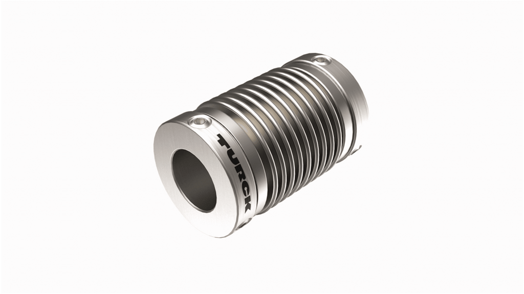 Accoppiamento Turck 29mm, giunto a soffietto con diametro di 19 mm, foro d1 di 10 mm e d2 di 8 mm, progettato per applicazioni con encoder ad albero pieno. Modello connettore diritta, serie RCS, lunghezza cavo 29 mm. Fornisce un collegamento sicuro e preciso tra i componenti.