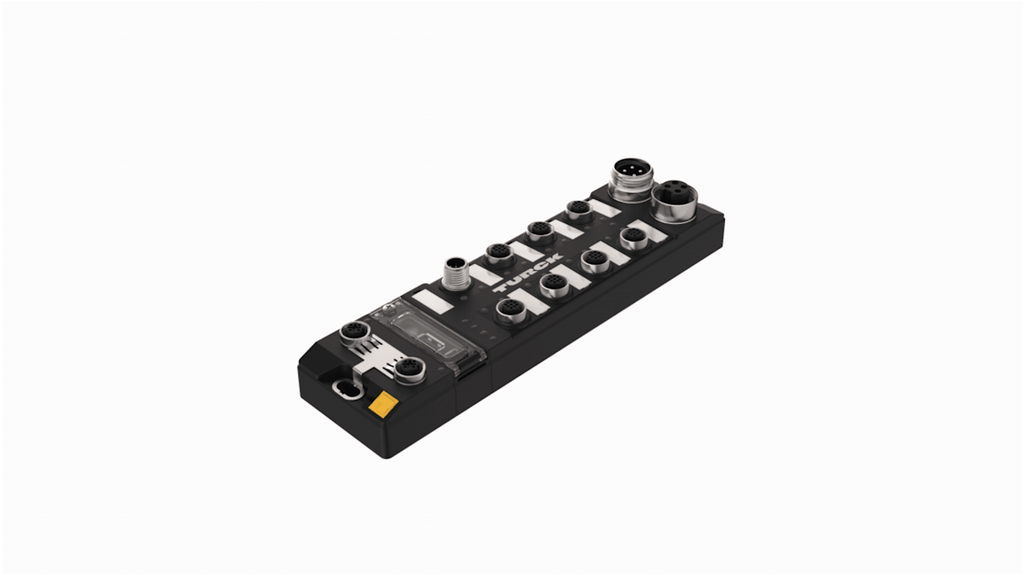 Controllore logico compatto Turck, 8 ingressi digitali PNP, tensione di alimentazione 24 V c.c., processore ARM Cortex A8 a 32 bit 800 MHz, 20 MB di memoria dati e programma, interfacce RS232/RS485, Ethernet, grado di protezione IP67, dimensioni 60,4 x 230,4 x 39 mm, temperatura operativa da -40 a +70 gradi Celsius, certificazione CE, omologazione cULus, runtime CODESYS PLC, licenza WebVisu CODESYS.