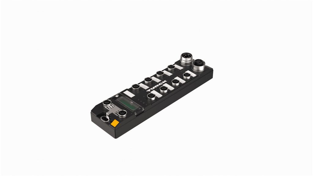 Modulo I/O multiprotocollo, 16 porte, connettore M12 a 5 pin, Profinet, Ethernet, tensione operativa 24V cc, corrente di uscita 2 A, grado di protezione IP65, IP67, IP69K, gamma di temperatura -40 a 70 gradi Celsius, peso 634 g, materiale custodia PA6-GF30, MTTF 165 anni, compatibile con Modbus TCP, EtherNet/IP, tecnologia Device Level Ring.