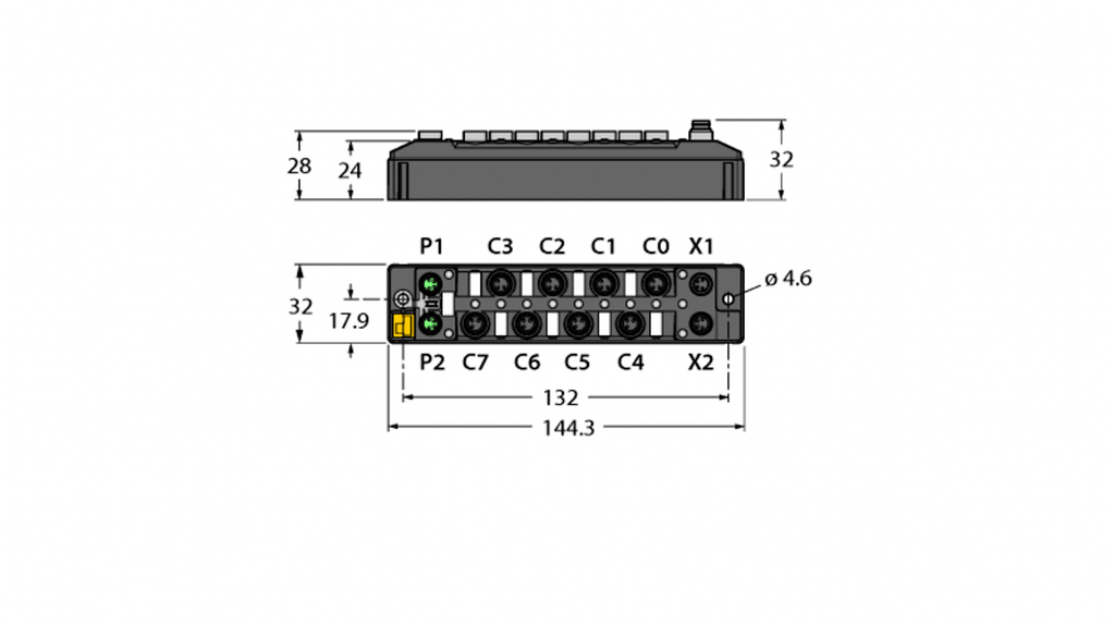 Modulo I/O multiprotocollo compatto per Ethernet, 4 ingressi PNP digitali, 4 uscite PNP digitali, supporta PROFINET, Ethernet/IP, slave Modbus TCP, switch Ethernet integrato per topologia di linea, 10 Mbps/100 Mbps, 2 connettori M8 a 4 pin per bus di campo, connettore M8 a 4 contatti per alimentazione, isolamento galvanico, contenitore in fibra di vetro, testato per urti e vibrazioni, classi di protezione IP65, IP67, IP69K.