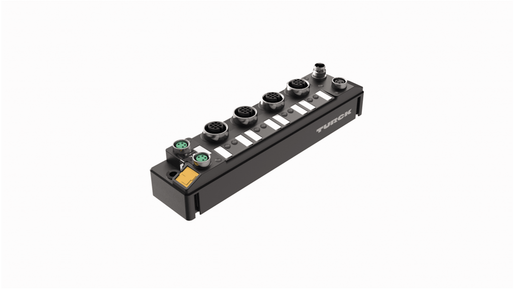 Modulo I/O Turck, EtherNet/IP, corrente di uscita 5 A, tensione di alimentazione 24 V, serie TBEN-S, grado di protezione IP69K, gamma di temperatura -40 a +70 C, peso 213 g, collegamento M12, protocollo EtherNet/IP, testato per urti e vibrazioni, adatto per zone ATEX 2/22, contenitore rinforzato con fibra di vetro, velocità di trasmissione 10/100 Mbps.