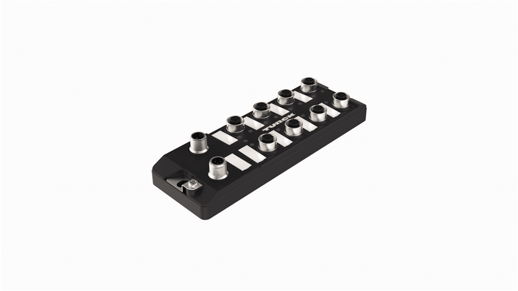 Modulo I/O Turck per collegamento segnali digitali a io-link master, 16 canali digitali universali PNP, 16 ingressi e 16 uscite PNP digitali, 2 canali digitali universali per porta, connettore M12 L-code per alimentatore ausiliario, grado di protezione IP67, robusto e completamente incapsulato, diagnostica io-link per corto circuito e alimentazione, connettore in metallo, testato per urti e vibrazioni.