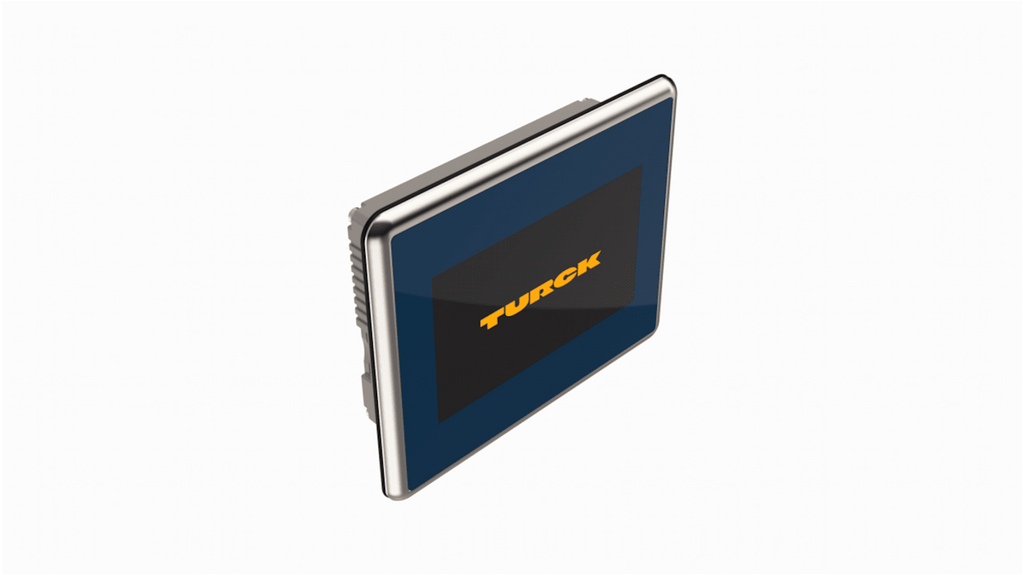 Display HMI touch screen da 7" Turck, serie HMI/PLC TX700, display TFT a colori widescreen, risoluzione 800 x 480 pixel, retroilluminazione LED, touchscreen capacitivo con rivestimento in vetro, telaio in acciaio inox, grado di protezione IP69, resistente agli acidi e agenti chimici, 1 porta Ethernet RJ45 10/100/1000 Mbit, 2 porte Ethernet RJ45 10/100 Mbit, 1 interfaccia seriale, 2 porte host USB, 1 slot per scheda SD.
