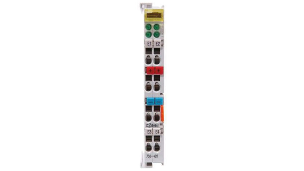 Modulo I/O PLC Wago, sistema I/O 750, 2 ingressi digitali, tensione 24 V c.c., collegamento con terminale a molla, dimensioni 100 x 12 x 64 mm, sistema modulare con I/O remoto, codici gialli per facile identificazione, morsetto a gabbia per semplificare il collegamento, compatibile con diversi protocolli di comunicazione. Ordinare modulo terminale 508-3959.