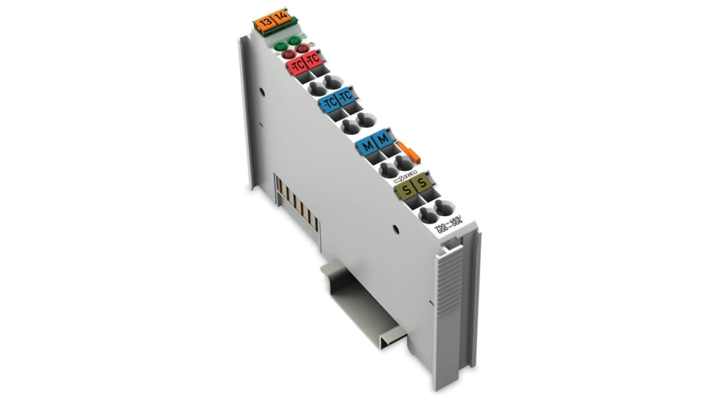 Modulo di ingresso analogico a 2 canali per PLC, serie 750, Wago. Realizzato in policarbonato e poliammide 6.6, conforme a RoHS. Montaggio su guida DIN 35. Tensione di alimentazione 5 V CC. Tipo di ingresso analogico.