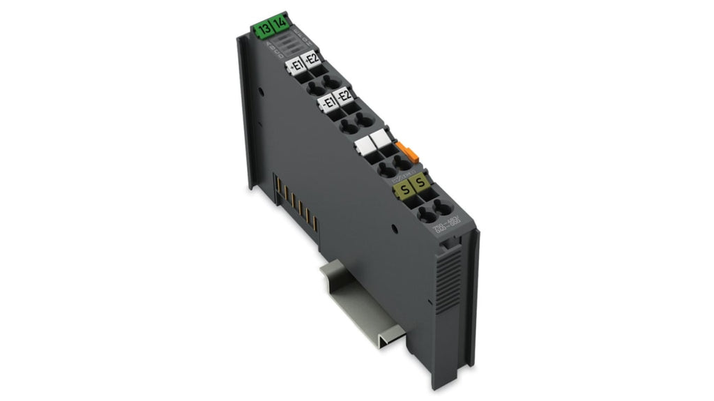 Modulo di ingresso analogico per PLC, 2 canali, serie 750, realizzato in policarbonato e poliammide 6.6, conforme a RoHS, montaggio su guida DIN 35, alimentazione 5 V CC, tipo di ingresso analogico.