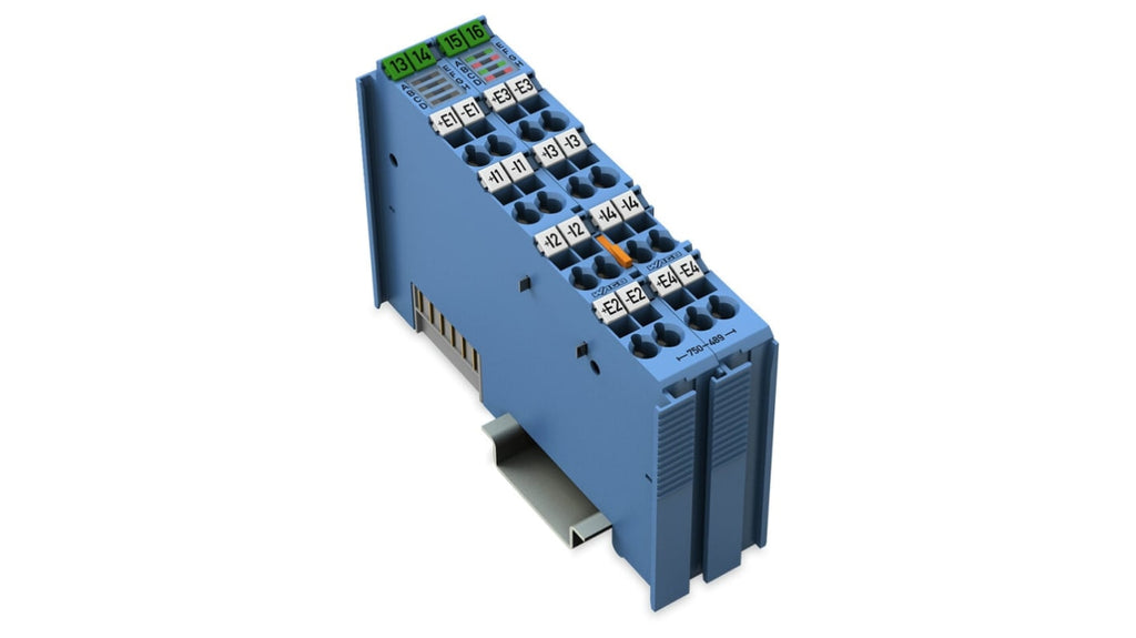 Modulo di ingresso analogico per PLC, serie 750, codice 750-489, marca Wago. Contenitore in policarbonato e poliammide 6.6, temperatura di esercizio da 0 a 55 gradi Celsius, 4 ingressi analogici, alimentazione 24 V c.c., conforme a normative di sicurezza.