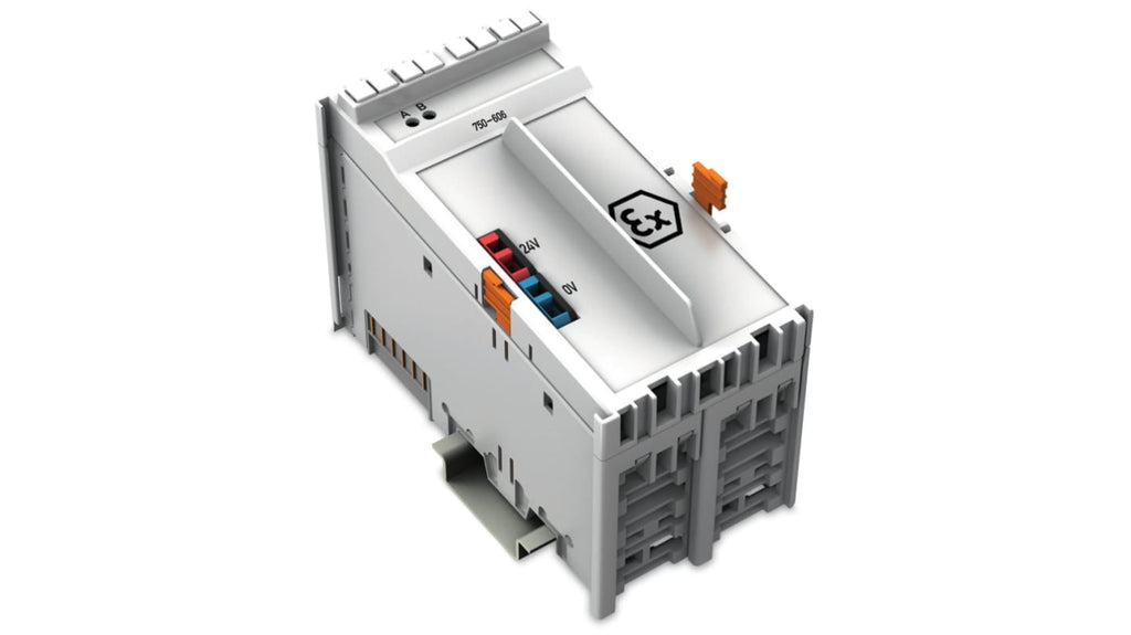 Alimentatore Wago, serie 750, tensione di alimentazione 24 V c.c., alimenta moduli Ex i della serie 750, monitora l'alimentazione del segmento Ex i a valle, separa sezione intrinsecamente sicura da sezione non intrinsecamente sicura, indicatore di stato a LED, conforme a RoHS.