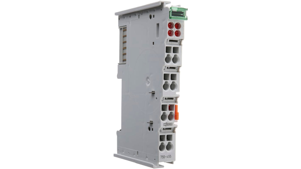 Modulo I/O PLC Wago, 4 ingressi analogici, segnali da 4 a 20 mA, risoluzione 12 bit, errore di misurazione ±0,1%, tempo di conversione 10 ms, alimentazione 5 V CC, montaggio su guida DIN, dimensioni 100 x 12 x 64 mm, massima temperatura operativa +55°C, contenitore in PC e PA, ingressi isolati, terminali a molla per collegamenti rapidi. Compatibile con segnali da 0 a 20 mA.