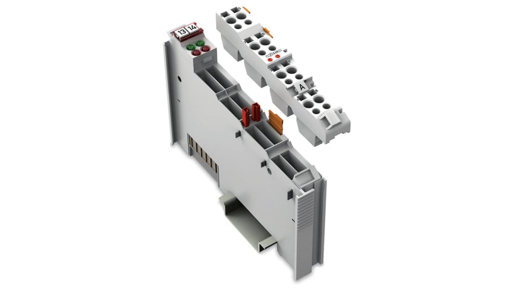 Modulo di uscita digitale per PLC, 2 canali, serie 753, tensione di alimentazione 24 V c.c., montaggio su guida DIN 35, realizzato in policarbonato e poliammide 6.6, conforme a RoHS.