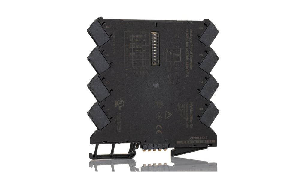 Condizionatore di segnale Weidmüller serie ACT20M, montaggio su guida DIN, terminale a vite, convertitore di segnale per corrente e tensione, tensione di alimentazione 24V cc, certificazione ATEX, isolamento elettrico 2,5 kV, temperatura operativa da -25 a +70 gradi, dimensioni 6,1 x 112,5 x 114,3 mm, standard CE, cULus, DNV, EAC, approvazione FM, ME25.