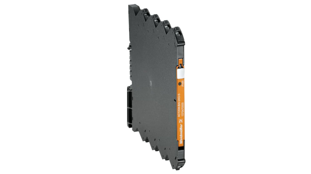 Convertitore di segnale Weidmüller serie ACT20M, isolamento e conversione sicuri, installazione rapida su guida di montaggio CH20M, configurazione tramite interruttore DIP o software FDT/DTM, temperatura di esercizio da -25 a 70 gradi Celsius, tensione di alimentazione 24V cc, gamma di ingresso -5 a 10V, gamma di uscita 4 a 20mA, certificazione ATEX e IECEx, conforme a RoHS.