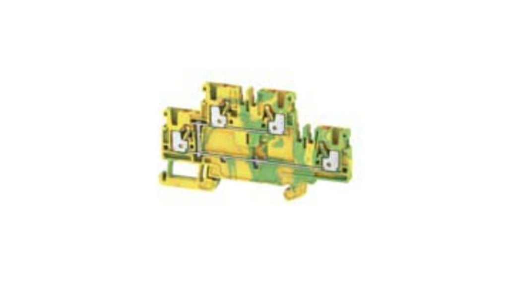 Morsettiera per guida DIN Weidmuller, colore Verde/Giallo, livello Doppio, corrente nominale 24A, tensione nominale 800 V, terminazione a inserzione, cavo CSA 2.5mm², compatibile con conduttori AWG 28 a 12, temperatura operativa da -60 a +130 gradi Celsius. Tecnologia a innesto per cablaggio rapido e semplice manipolazione. Codice costruttore 1547680000.