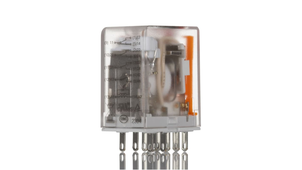 Relè di potenza Weidmuller serie DRM, 4PDT, bobina 230V ca, montaggio a pannello. Tensione di commutazione massima 250V ca, resistenza bobina 15 kΩ, dimensioni 21.5 x 36 x 28mm, vita meccanica 20 milioni di cicli, materiale contatto lega di argento, temperatura operativa da -40 a +55°C, tipo di terminale a innesto, standard cURus. Design compatto per applicazioni industriali.