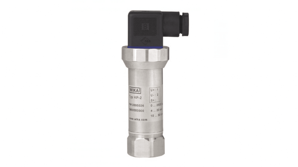Sensore di pressione relativa WIKA, pressione massima 4000 bar, precisione 0,5 percento, uscita 2 fili, 4 a 20 mA, design brevettato per elevato numero di cicli di carico, collegamento di processo intercambiabile, adatto per pressioni dinamiche, stabilità a lungo termine. Codice costruttore 12975541, serie HP-2.