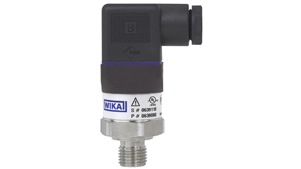 Sensore di pressione WIKA, trasmettitore di pressione serie S-20, pressione massima 10bar, uscita analogica 4-20 mA, precisione 0,25%, collegamento al processo G1/4, collegamento elettrico DIN 175301-803 A, tensione di alimentazione 8-35 V c.c., temperatura operativa da -15 a +125 gradi Celsius, grado di protezione IP65, struttura in acciaio inox, resistenza agli urti fino a 500 g, certificazione cULus e EAC.