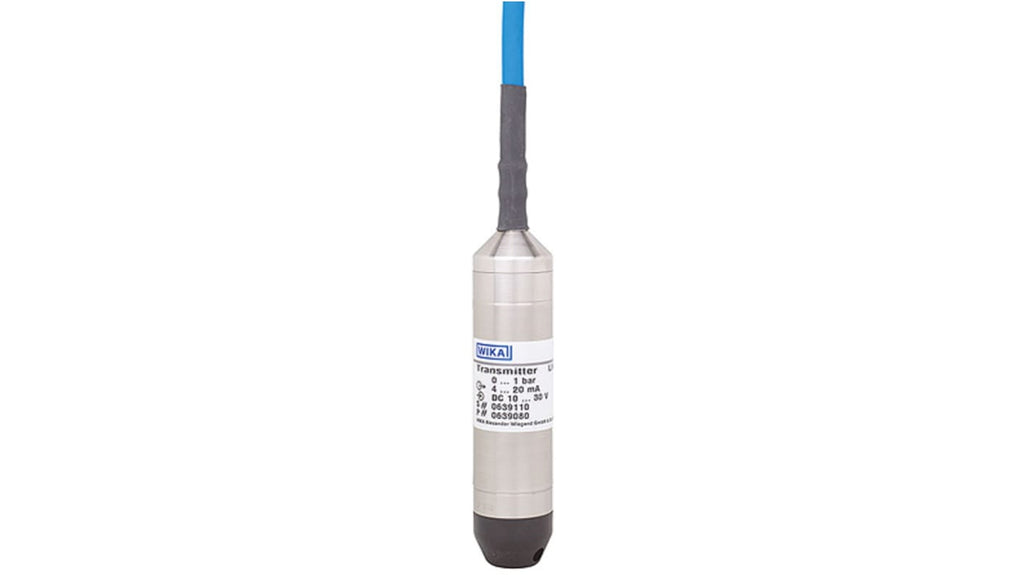 Sensore di pressione WIKA, trasmettitore di pressione a immersione, gamma LH-10, pressione massima 2.8 psi, precisione < 0.25%, uscita analogica 4-20 mA, cavo FEP ventilato 5 metri, tensione di alimentazione 10-30 V c.c., custodia in acciaio inox, grado di protezione IP68, temperatura operativa da -10 a +50 gradi Celsius.