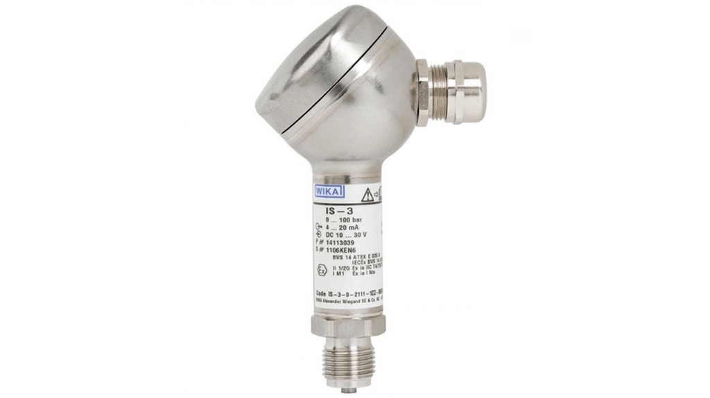 Sensore pressione relativa WIKA, 10bar max, progettato per applicazioni industriali in aree pericolose, custodia robusta, installazione rapida, tipo di lettura pressione, pressione minima 0bar, pressione massima 10bar, precisione 0,5%, serie IS-3, resistente a acidi, basi, oli e solventi.