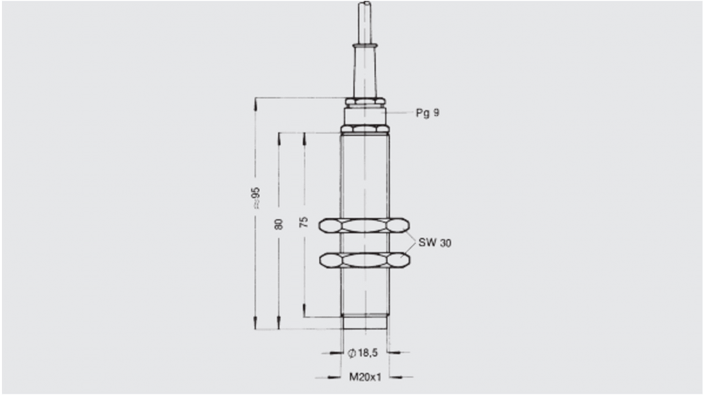 Interruttore reed magnetico SPDT, corrente massima 1A, tensione massima 230V, potenza massima 100VA, montaggio con foro passante, protezione IP65, lunghezza cavo 4 metri, temperatura di esercizio 10-80 gradi Celsius, colore cavo grigio, modello MSA MRU20, codice costruttore 48772451, marchio WIKA.